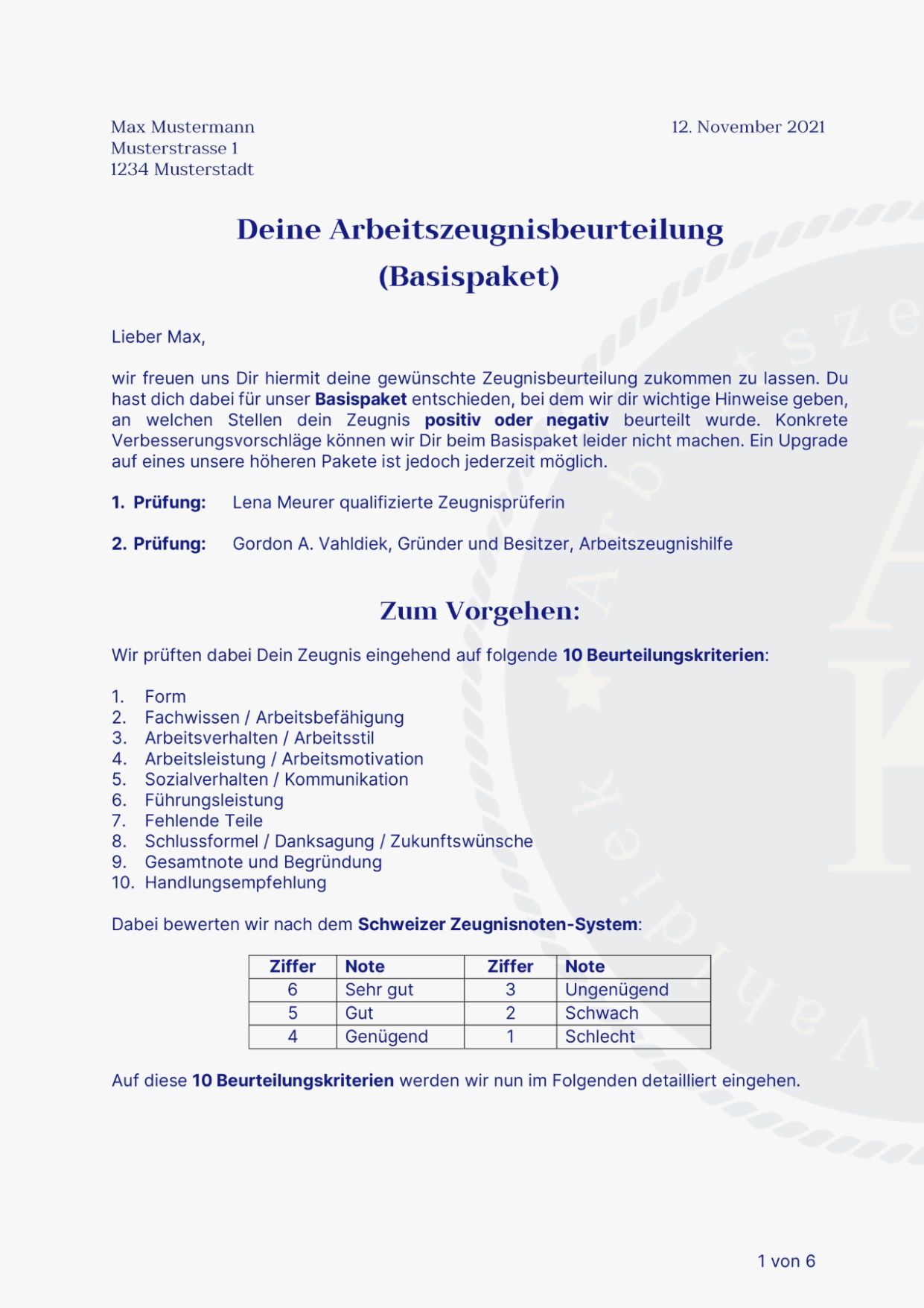 ✓ Präzise Prüfung durch zwei qualifizierte Zeugnisprüfer