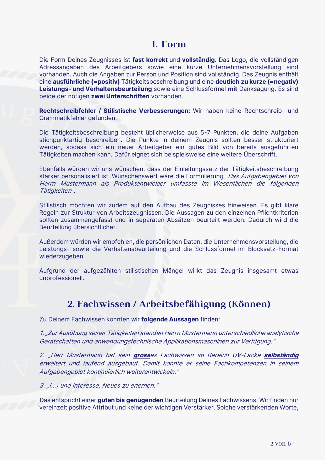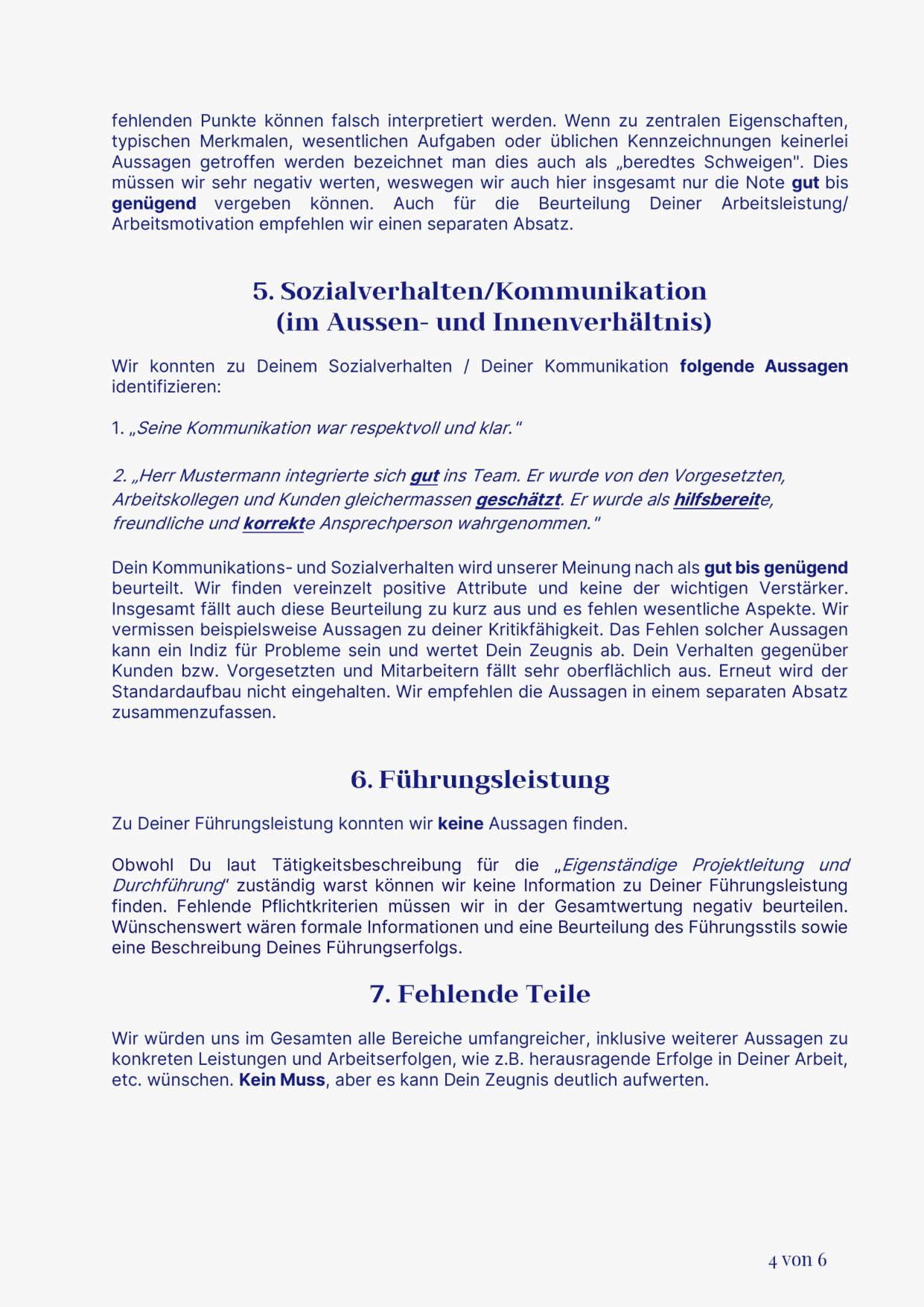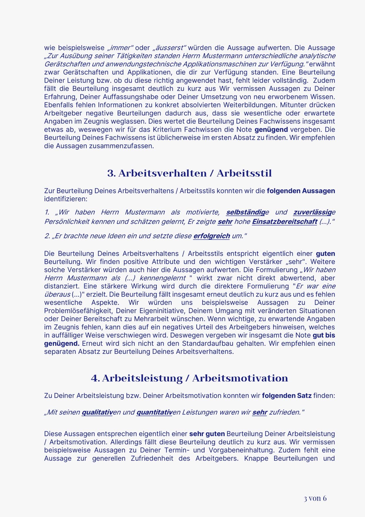 ✓ Detaillierte Beschreibung kritischer Formulierungen und Zeugniscodes
