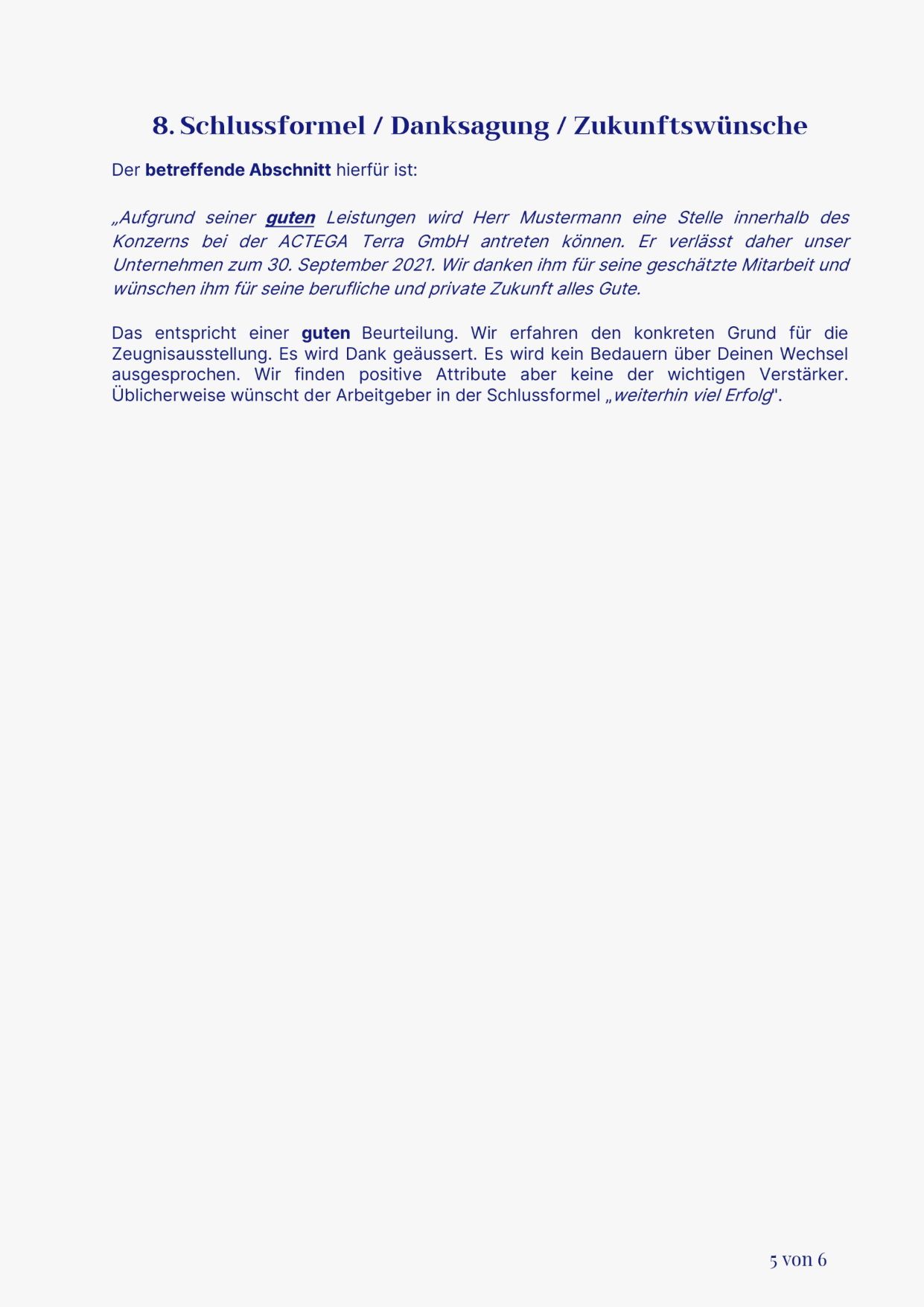 - Abschlusszeugnis: Es wird nach Beendigung des Arbeitsverhältnisses ausgestellt und in der Vergangenheitsform geschrieben.